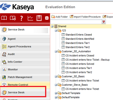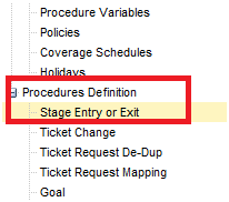 - In the Kaseya Service Desk left pane menu, under Procedures Definition, click Stage Entry or Exit.
