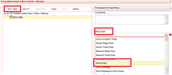 - Click New Step at the top of the page and then select Send Email from the Step Type menu.
